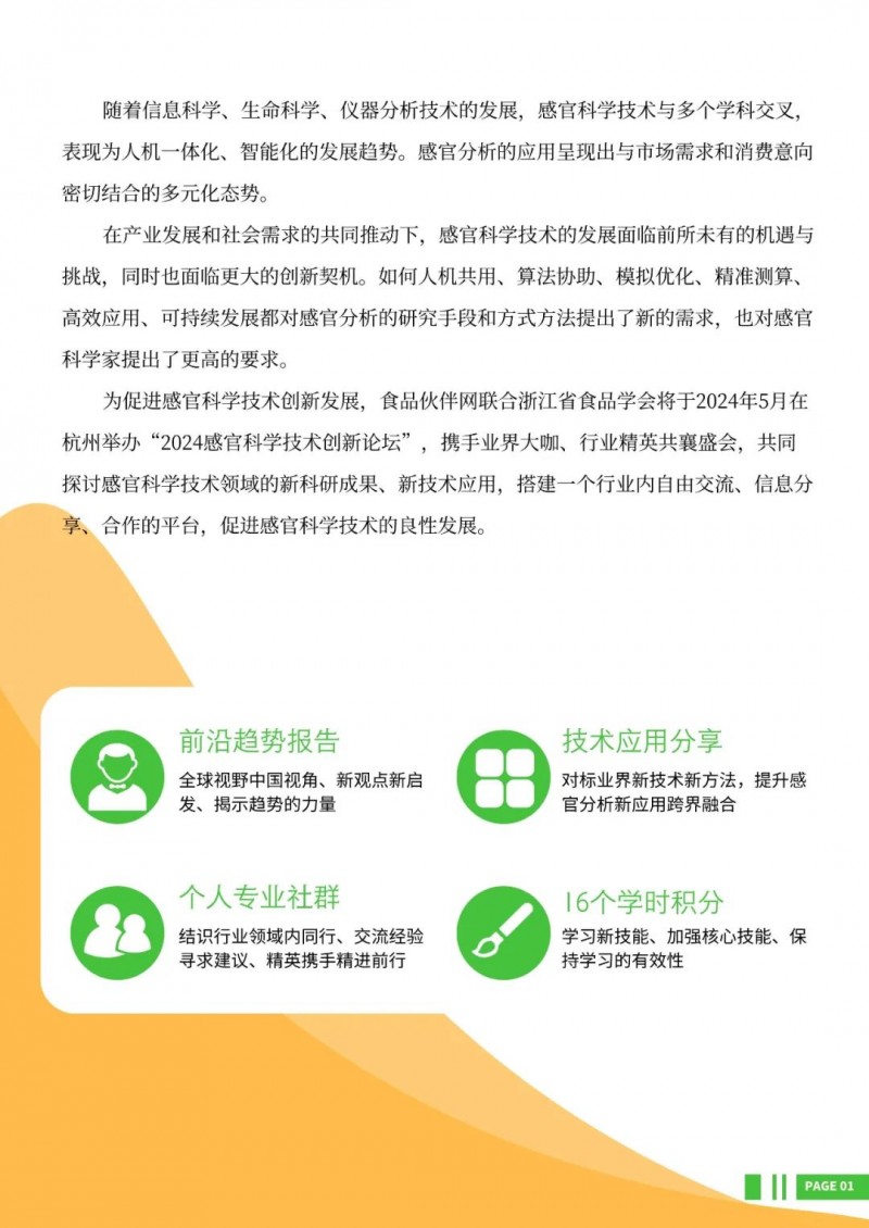 為促進(jìn)感官科學(xué)技術(shù)創(chuàng)新發(fā)展,食品伙伴網(wǎng)聯(lián)合浙江省食品學(xué)會(huì)將于2024年5月在杭州舉辦“2024感官科學(xué)技術(shù)創(chuàng)新論壇”,攜手業(yè)界大咖、行業(yè)精英共襄盛會(huì),共同探討感官科學(xué)技術(shù)領(lǐng)域的新科研成果、新技術(shù)應(yīng)用,搭建一個(gè)行業(yè)內(nèi)自由交流、信息分享、合作的平臺(tái),促進(jìn)感官科學(xué)技術(shù)的良性發(fā)展。