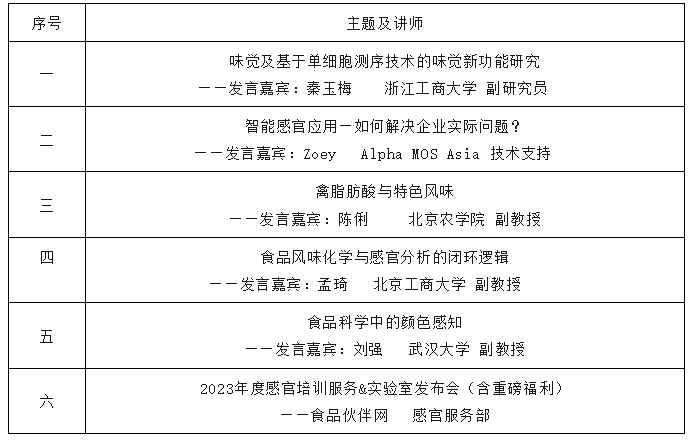 1天6場感官主題分享,包含人工+智能感官基礎(chǔ)(味覺、嗅覺)、食品風(fēng)味化學(xué)&儀器分析、色彩測量視覺應(yīng)用等多個(gè)主題分享,更有豐富的案例實(shí)踐分享,還有2023年度感官培訓(xùn)服務(wù)/實(shí)驗(yàn)室服務(wù)發(fā)布會(huì)等多個(gè)環(huán)節(jié),年初為每一位食品人提供線上免費(fèi)感官學(xué)習(xí)交流的機(jī)會(huì),我們一起,充好了電,蓄好了能,2023整裝待發(fā)!
