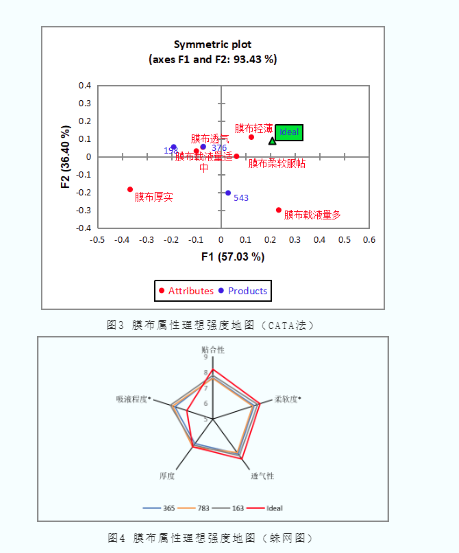 2.測(cè)試:將測(cè)試品使用順序進(jìn)行隨機(jī),消除使用順序?qū)υu(píng)分帶來的影響,除測(cè)試品的膚感、喜好度等方面的數(shù)據(jù)收集,并探究面膜的膜布、精華液的消費(fèi)者理想強(qiáng)度