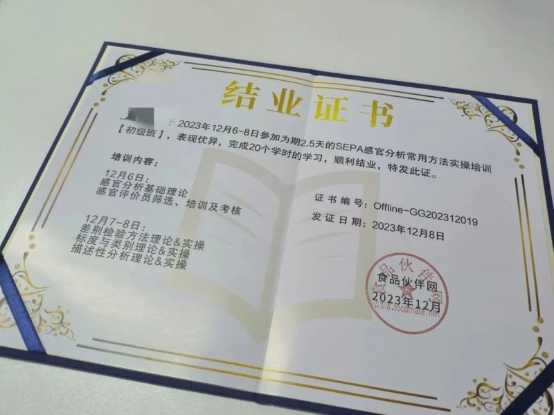 SEPA感官分析常用方法實(shí)操培訓(xùn)(初級(jí)班)成功舉行!學(xué)員們完成培訓(xùn)并圓滿結(jié)業(yè)。專業(yè)的事情需要專業(yè)的人來(lái)做!希望學(xué)員們帶著此次培訓(xùn)班的“感官知識(shí)收獲”,能夠順利開(kāi)展工作!我們的培訓(xùn)工作在繼續(xù)進(jìn)行,希望在后續(xù)的提升學(xué)習(xí)中能與大家再次見(jiàn)面,一起期待!