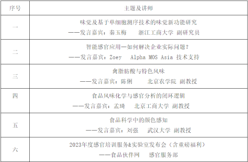 1天6場感官主題分享,包含人工+智能感官基礎(味覺、嗅覺)、食品風味化學&儀器分析、色彩測量視覺應用等多個主題分享,更有豐富的案例實踐分享,還有2023年度感官培訓服務/實驗室服務發(fā)布會等多個環(huán)節(jié),年初為每一位食品人提供線上免費感官學習交流的機會,我們一起,充好了電,蓄好了能,2023整裝待發(fā)!