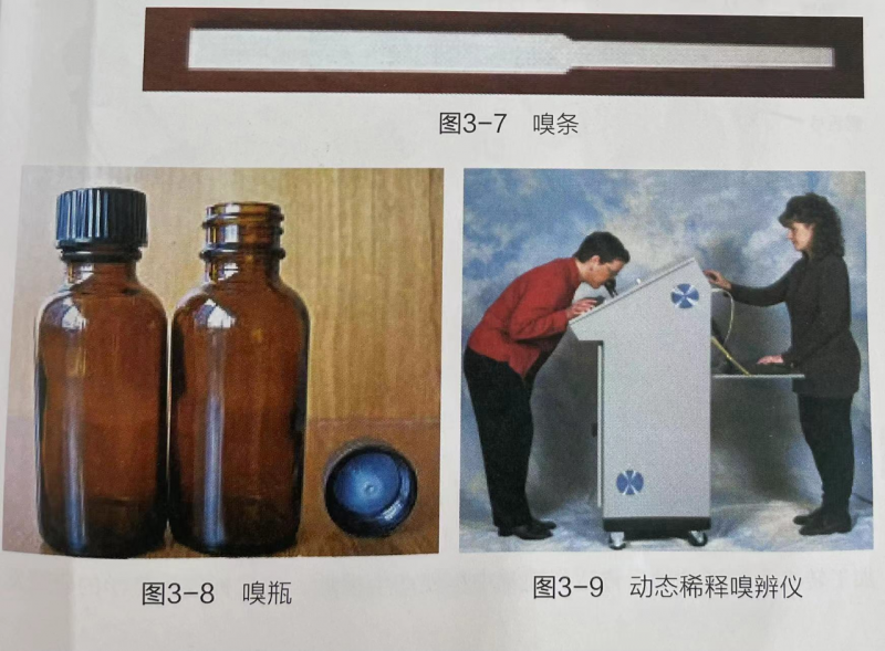 常見氣味辨識可以盛裝嗅聞物質(zhì)的嗅瓶或蘸取嗅聞物質(zhì)的嗅條為工具開展(圖3-7和圖3-8),嗅覺網(wǎng)值測定則可采用動態(tài)稀釋嗅辨儀(圖3-9)。