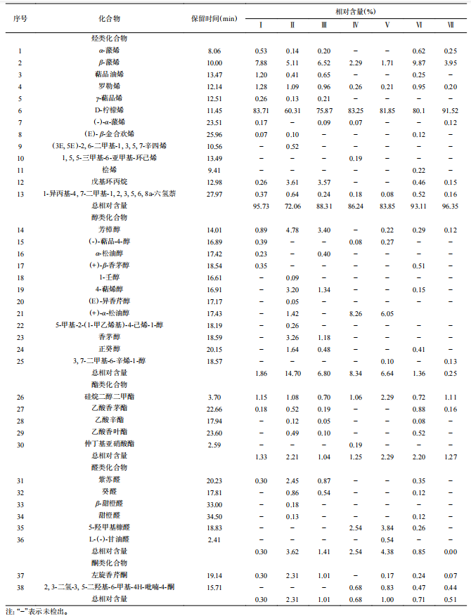 表5 不同采收成熟度沃柑汁的主要揮發(fā)性香氣成分