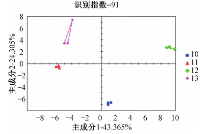 生地黃電子鼻分析結(jié)果懷區(qū)不同主栽品種生地黃鑒別