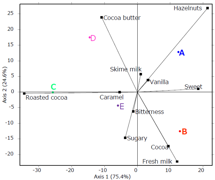 通過TDS方法來分析5個牛奶巧克力之間的感官特征