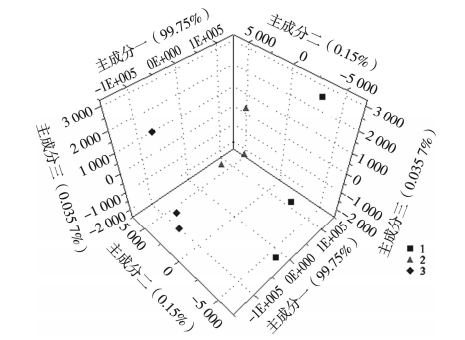 圖1 不同發(fā)酵方式柿子酒的主成分分析 注:1為清汁發(fā)酵;2為皮渣發(fā)酵;3為果醬發(fā)酵,下同
