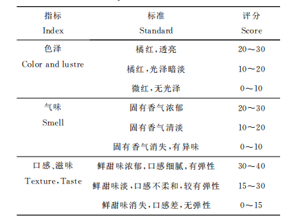 表1脊尾白蝦感官評定標準