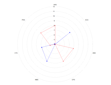 以電子舌所測的樣品相對的酸咸鮮排序數(shù)據(jù),繪制基本的滋味雷達圖。