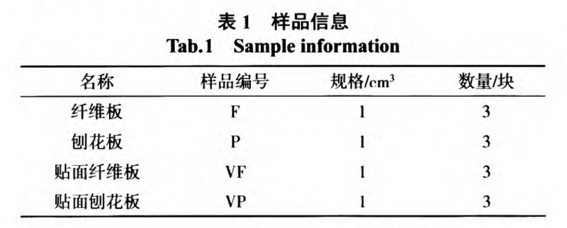 某人造板廠生產(chǎn)的共4種人造板材樣品,樣品切割成約1 cm3的小塊,具體信息見表l。
