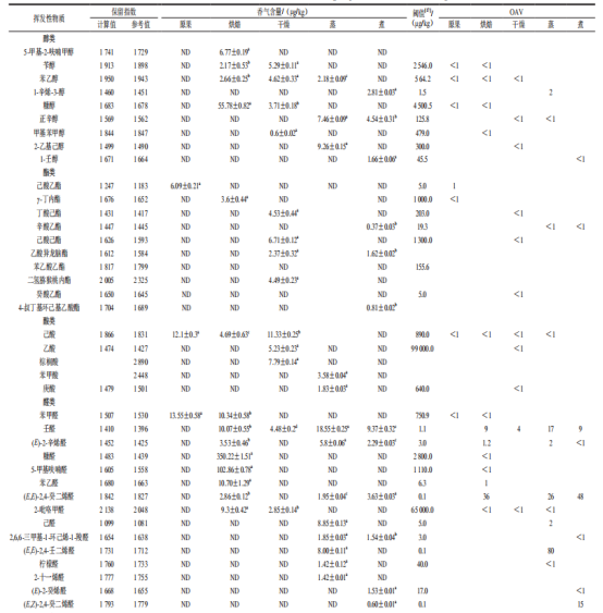 表2 不同預處理后沙棗中揮發(fā)性物質(zhì)含量及OAV