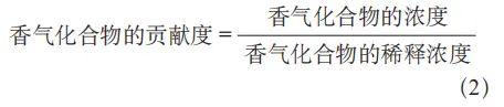 香氣化合物的貢獻(xiàn)度的計算公式為: