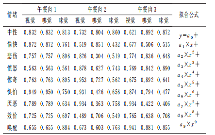 由于情緒分析取值為毫秒之間,因此為了避免分析值缺失而影響分析效果,采用多項(xiàng)式擬合觀察情緒變化趨勢(shì),擬合效果見表2。