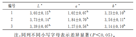 采用全自動(dòng)色差儀測(cè)定樣品的L*、a*、b*,重復(fù)測(cè)定3次后取平均值。