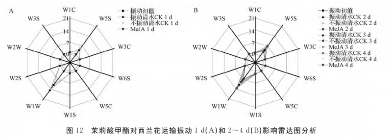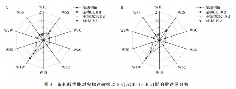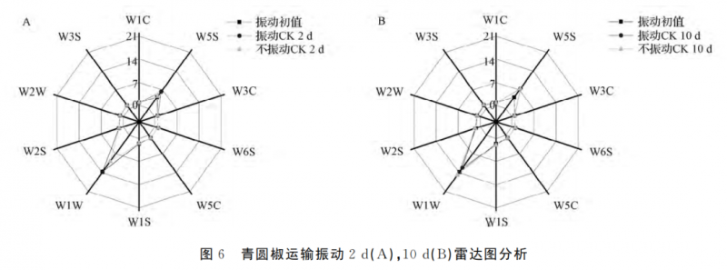 茉莉酸甲酯對(duì)尖椒運(yùn)輸振動(dòng)影響雷達(dá)圖分析