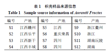 12批枳殼樣品購于甘肅中天藥業(yè)有限責(zé)任公司,具體樣品批次信息見表1,經(jīng)南京中醫(yī)藥大學(xué)藥學(xué)院陳建偉教授鑒定,確定樣品來源為蕓香科植物酸橙C. aurantium L.的干燥未成熟果實(shí)。