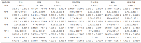 2.1電子舌味覺測(cè)定結(jié)果