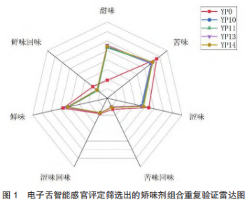 表4電子舌智能感官評(píng)定篩選出的矯味劑組合