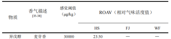 本實驗通過對HS、FJ和WF樣品中的揮發(fā)性化合物進行檢測,共檢測出揮發(fā)性化合物57種,其中醇類22種、醛類6種、酸類4種、酯類8種、酮類9種、其他類8種。對3組樣品中揮發(fā)性化合物相對含量與種類進行PCA分析與聚類分析發(fā)現(xiàn),HS組揮發(fā)性化合物數(shù)量較多,其中主要物質為芳樟醇、2-壬醇和2-十二烷醇等物質;FJ組主要揮發(fā)性化合物為2-壬酮、2-十一酮等物質;WF組揮發(fā)性化合物種類豐富,其中酸類物質與醛類物質占據(jù)主導,為后續(xù)風味物質的形成奠定了基礎。通過ROAV值大小對濃汁發(fā)酵前后關鍵風味物質進行判定,發(fā)現(xiàn)HS與FJ樣品中關鍵風味物質種類幾乎一樣,分別為14種和13種;反觀WF樣品中關鍵風味物質種類較少,僅有7種,這說明經(jīng)過發(fā)酵后的馬鈴薯濃汁在關鍵風味物質方面具有顯著性改善。