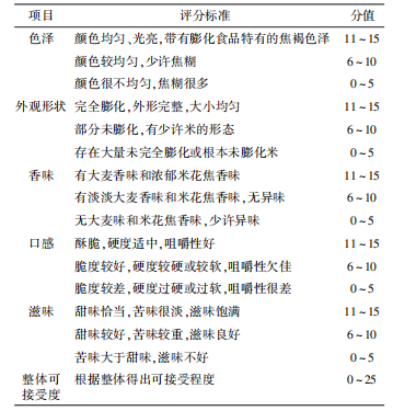 表1 氣流膨化青稞米感官評(píng)分標(biāo)準(zhǔn)