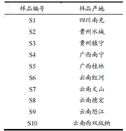 10種不同產(chǎn)地草果干燥成熟果實,草果樣品具體信息見表1。